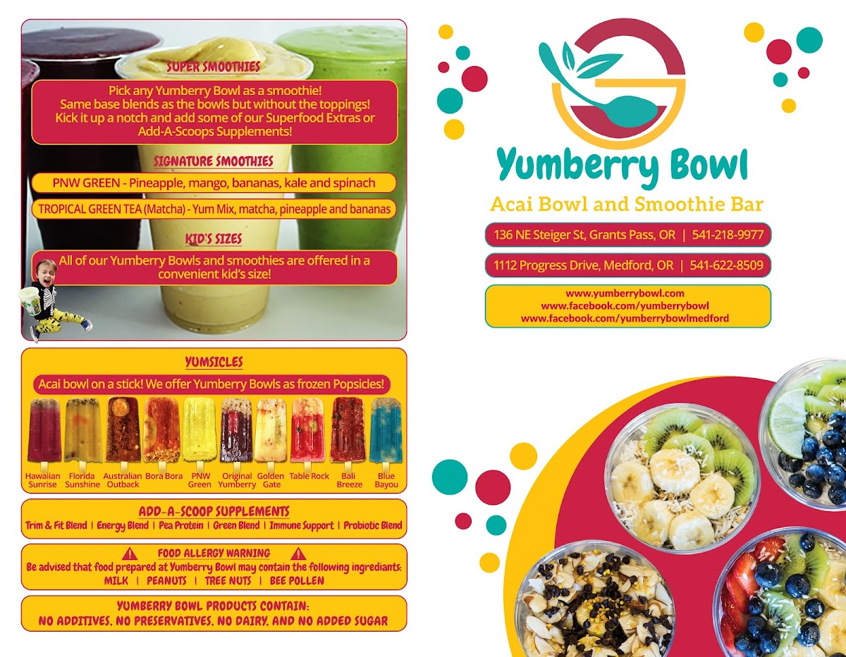 Welcome to Yumberry Bowl Medford, your local destination for delicious and vibrant smoothie bowls. Located at 812 S Riverside Ave, Medford, OR, this eatery combines freshness with flavor in every dish. With prices ranging from $8.50 for a small to $12.00 for a large, patrons rave about the quality and presentation of their bowls.